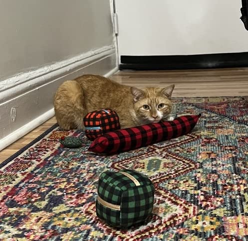 "I bought this box for my two cats, and it's been a hit! They both go crazy for it, rolling around and batting it with their paws. It's such a joy to watch them play together. The toy seems durable and well-made, holding up to their rough play. Definitely a must-have for any cat owner looking to spoil their fur babies!"